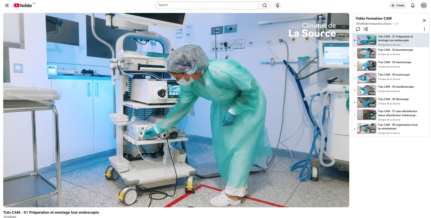 L’équipe du CAM a participé à un projet pilote de vidéos de tutoriels sur le nettoyage et le retraitement des endoscopes, en collaboration avec le Service biomédical et le Service marketing et communication. Ces vidéos, disponibles sur YouTube en mode privé, servent de supports pratiques dans le cadre de la formation continue pour le CAM ainsi que pour les équipes soignantes du bloc opératoire lors de situations exceptionnelles.